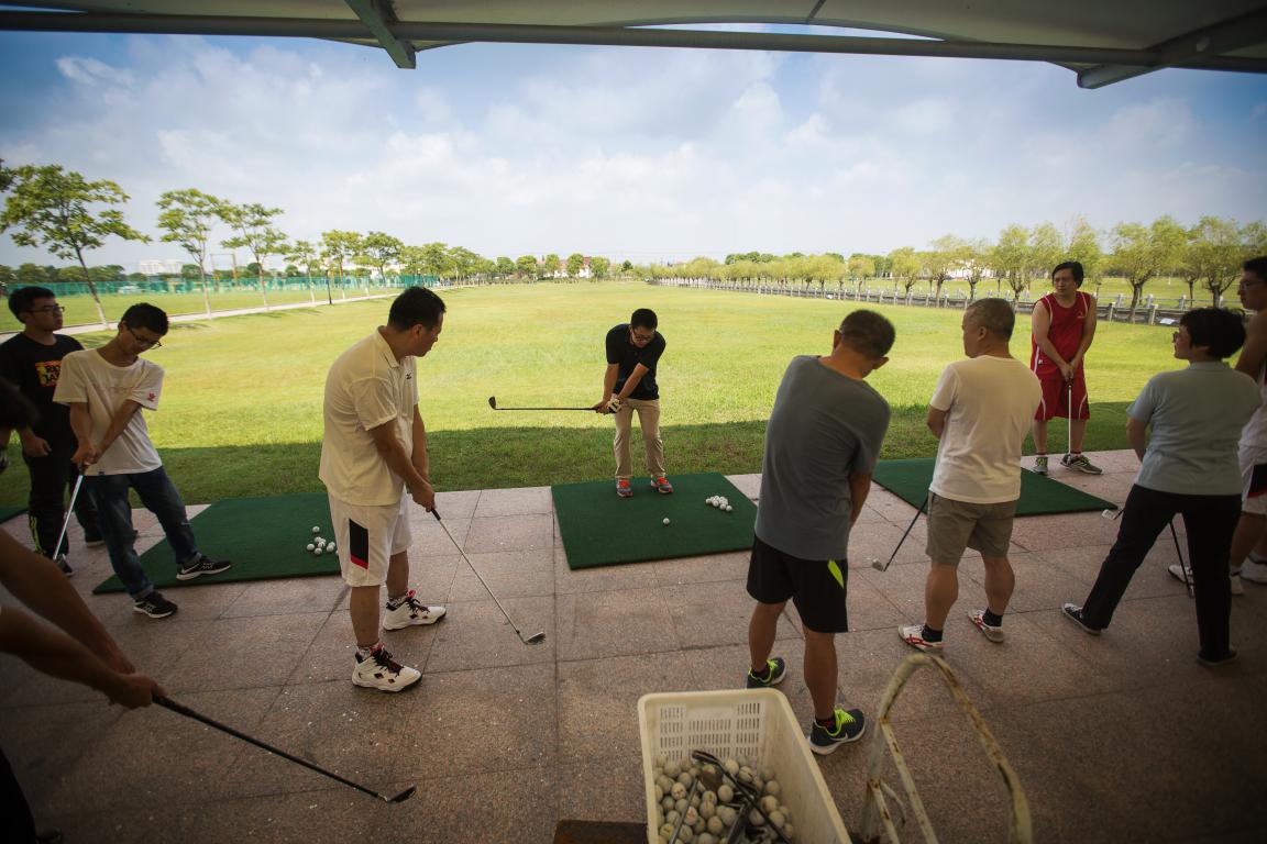 在师生高尔夫训练中,在体育学院老师的指导下,师生进行握杆、挥杆的学习,师生们亲身感受到了高尔夫运动带来的快乐。