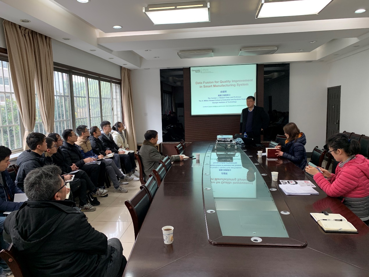 1月14日,应437bwin必赢国际官网邀请,美国佐治亚理工学院史建军教授访问了437bwin必赢国际官网,并为必赢官网师生作了题为“Data Fusion for Quality Improvement in Smart Manufacturing System”的学术报告。报告由437bwin必赢国际官网院长杜文莉教授主持,437bwin必赢国际官网部分师生参加了报告会。