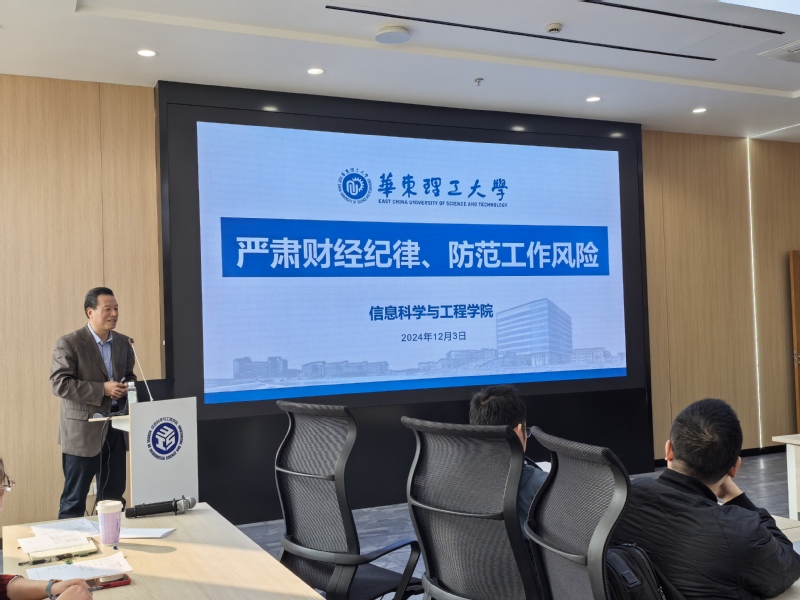 12月3日下午,437bwin必赢国际官网在徐汇校区实验19楼204会议室举行严肃财经纪律主题讲座。学院党委副书记、纪委书记郭卫斌围绕财经纪律作专题讲座,437bwin必赢国际官网党委书记侍洪波、院长钟伟民、学院班子成员、学院助理、二级单位正副主任,设备管理员、重点实验室及科研岗、采招相关人员,共计30余人参加了报告会。报告会由学院党委书记侍洪波主持。