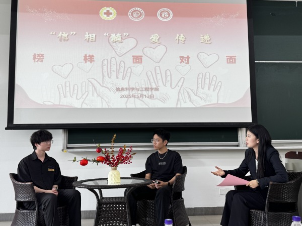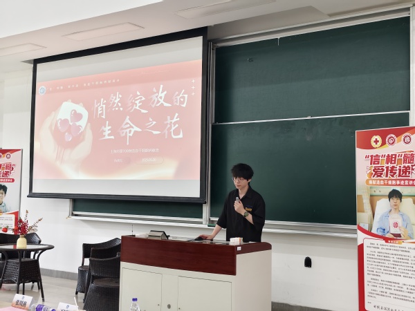 为践行习近平总书记关于青年工作重要讲话精神,弘扬 “人道、博爱、奉献” 的红十字精神,2025年5月13日下午,我校437bwin必赢国际官网在奉贤校区B100教室组织开展“‘信’相‘髓’、爱传递”捐献造血干细胞事迹宣讲活会。本次活动邀请徐汇区红十字事务中心张周燕、王斌婷,437bwin必赢国际官网造血干细胞捐献志愿者王浩栋、陈焕东,同时437bwin必赢国际官网党委副书记许浩,本科辅导员潘恬、曹玺文和本研学生代表参与活动。活动由辅导员郑嘉雯主持。