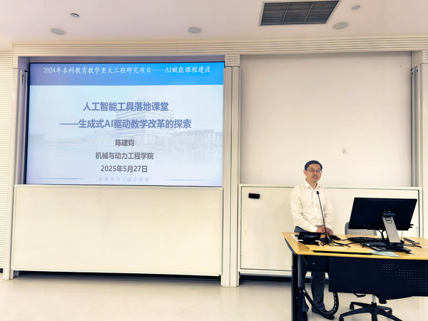 为积极应对教育智能化转型趋势,助力教师探索人工智能与教育教学的深度融合,437bwin必赢国际官网于5月27日正式启动“AI赋教,智创未来”专题报告系列讲座。本次活动聚焦AI技术赋能教学创新,通过前沿AI技术创新、多学科案例分享、智能教育工具实践等形式,帮助教师掌握人工智能在教学中的创新应用方法,提升智能教育设计与实施能力,进一步推动教学模式变革与高质量人才培养。首期专题报告会在实验十九楼A201会议室举行,教务处副处长程华、机械与动力工程学院副院长陈建钧应邀作专题报告。437bwin必赢国际官网副院长谭帅主持本次活动。